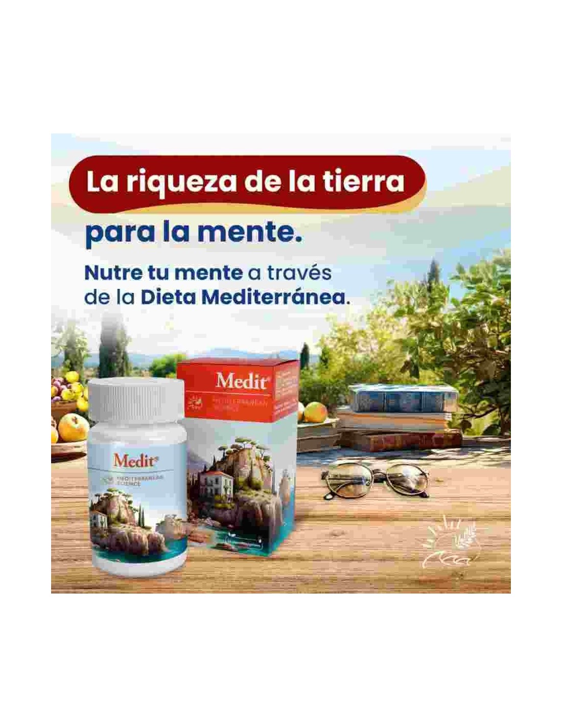 Refuerzo Cognitivo Avanzado: Especialmente formulado para prevenir el deterioro cognitivo, realzando tu memoria y capacidad de enfoque. Extractos Naturales de Alta Calidad: Contiene extractos de uva y azafrán, reconocidos por sus cualidades antioxidantes y beneficios para la salud mental. Complejo Vitamínico y Mineral: Una mezcla enriquecedora de vitaminas B5 y B12, junto con minerales esenciales como Zinc, Selenio y Magnesio, claves para fortalecer el sistema nervioso. Bienestar Emocional: El azafrán es un componente clave en la regulación del estrés y la ansiedad, promoviendo un equilibrio emocional completo. INGREDIENTES Extracto de Uva: Fuente rica en antioxidantes como el resveratrol, vital para proteger las neuronas y favorecer el rendimiento cognitivo. Extracto de Azafrán: Beneficia el estado anímico y la estabilidad emocional, con antioxidantes que son un regalo para el cerebro. Magnesio: Esencial en el funcionamiento normal del sistema nervioso y aliado en la prevención del deterioro cognitivo. Zinc: Un pilar para la función cerebral, ayudando a evitar desórdenes neurológicos. Ácido Pantoténico: Clave para el metabolismo cerebral y mantener una concentración firme. Selenio: Antioxidante que resguarda la salud cerebral. Vitamina B12: Indispensable para la integridad del sistema nervioso y la prevención del deterioro cognitivo. CONSEJOS DE USO: Para maximizar los efectos de Medit®, se aconseja consumir 1 cápsula diaria, preferentemente acompañada de alimentos. Los complementos alimenticios no deben utilizarse como sustitutos de una dieta variada y equilibrada y de un estilo de vida saludable. No superar la dosis diaria expresamente recomendada. No recomendado en caso de hipersensibilidad o alergia a cualquiera de los componentes de la formulación. Mantener fuera del alcance de los niños más pequeños. Conservar en un lugar fresco y seco, protegido de la luz solar y las fuentes de calor. La información contenida en nuestra web tiene carácter informativo y no puede ser considerada como sustitutiva de la prescripción, diagnóstico o tratamiento médico. Los resultados de los complementos nutricionales pueden variar en función de la persona, y el tiempo para obtener los beneficios indicados dependerá de cada caso.