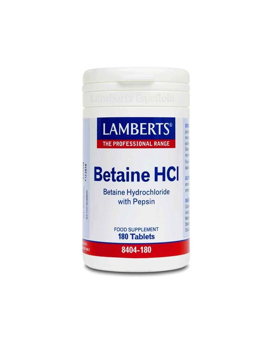 INDICACIONES: Ayuda a digerir las proteínas y acidificar el estómago Los comprimidos de este suplemento están diseñados para disolverse en el estómago, que es donde se requiere la acidificación,ya que libera ácido clorhídrico, el mismo ácido que se produce naturalmente en el estómago. De esta manera ayuda a reemplazar parte de la acidez perdida en el estómago, cooperando así en la digestión de los alimentos.Este producto puede ser de utilidad para aquellos que quieren asegurar una cantidad suficiente de ácido clorhídrico. INGREDIENTES: Cada tableta aporta: Betaína HCI324 mg Pepsina5 mg CONSEJOS DE USO: La ingesta de este producto es de 1 a 3 tabletas al día con comidas según necesidades del consumidor presentacion:bote de 180 comprimidos