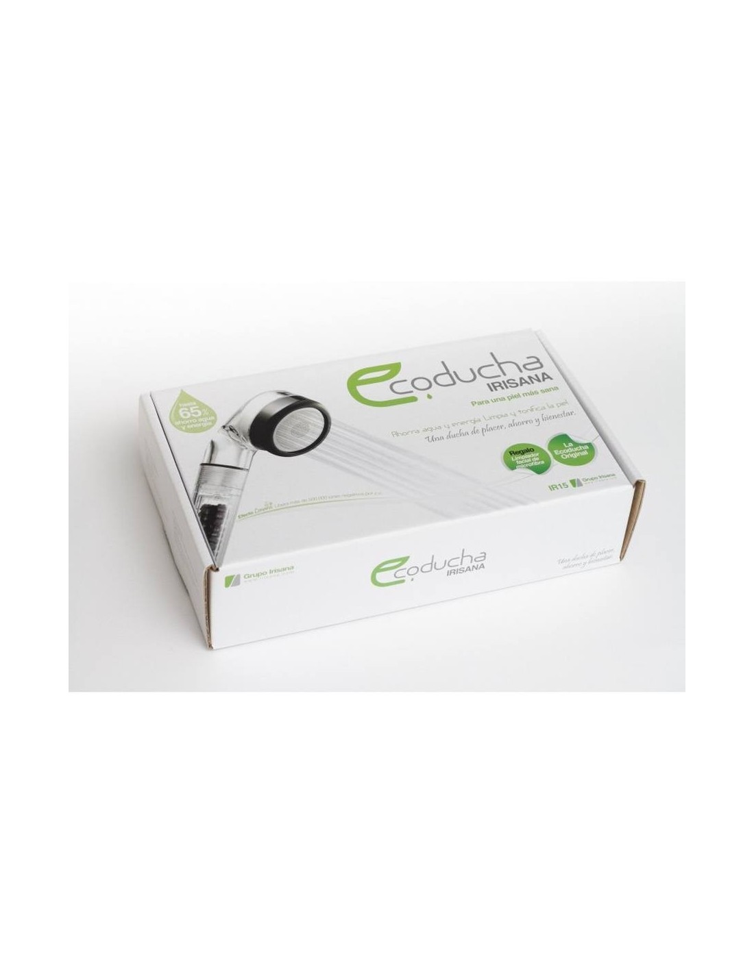 Ecoducha Irisana Para una piel más sana Ideal para pieles alérgicas y sensibles Tonifica, hidrata y limpia en profundidad tanto la piel como el cabello, pudiendo así reducir el uso de jabones. Ahorra hasta un 65% de agua y la energía necesaria para calentarla. Ecoducha Irisana Ideal para pieles delicadas y alérgicas. Limpia e hidrata en profundidad la piel y el cabello además de tonificar. Gracias a estas propiedades reduce el uso de geles y jabones. 65% de ahorro en el consumo de agua y energía La Ecoducha Irisana tiene 3 componentes esenciales: Cabezal con disco de 412 microporos que rompen las moléculas del agua liberando gran cantidad de iones negativos. Filtro de cerámicas de alta tecnología, que mejora la calidad del agua, la suaviza, reduce el cloro y elimina los olores. Filtro de partículas, elimina del agua sedimentos, arenas, óxidos... y ayuda a mantener la piel limpia. Características: Limpia y tonifica la piel reduciendo la cantidad necesaria de jabones. Ideal para pieles sensibles, alérgicas y atópicas. Máxima hidratación sin cremas. Prepara la piel para el maquillaje. Ecológica: Ahorra hasta el 65% de agua y la energía necesaria para calentarla. Previene la caspa y la caída del cabello. Previene la aparición de espinillas y acné.