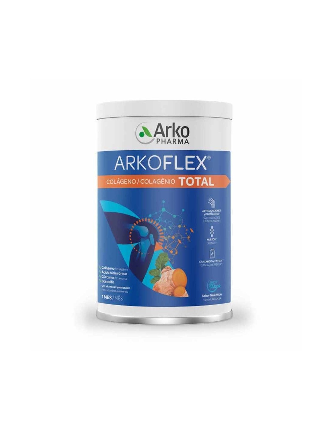 INDICACIONES Arkopharma® Laboratorios, lanza su última novedad Arkoflex® Dolexpert Forte 360º, compuesto por una asociación innovadora de ingredientes para un abordaje 360º del sistema locomotor. Complemento alimenticio en polvo, a base de Colágeno hidrolizado y tipo II nativo, Ácido hialurónico, Manganeso, Glucosamina, Controitina, además de una asociación de ingredientes especialmente seleccionados por sus benefiicos en el aparato locomotor. Magnesio: ayuda al funcionamiento normal de músculos. Vitamina C: ayuda a la formación normal de colágeno para el adecuado funcionamiento de huesos, cartílagos y piel. Cúrcuma y la Boswelia: contribuyen a la flexibilidad y bienestar articular. Lithothamnium: aporta calcio, necesario para el mantenimiento normal de huesos. 7 Vitaminas INGREDIENTES Colágeno hidrolizado ? Maltodextrina ? Carbonato de magnesio ? Clorhidrato de glucosamina (origen vegetal) ? Sulfato sódico de condroitina ? Polvo de Lithothamnium (Phymatolithon calcareum (Pallas) W.H.Ade&D.L.Mckibbin) ? Acidulante: ácido cítrico ? Aroma natural de naranja ? Oleorresina de Boswelia (Boswellia serrata Roxb. ex. Colebr.) ? Vitamina C ? Colorante: betacaroteno ? Extracto de rizoma de cúrcuma (Curcuma Longa L.) ? Hialuronato de sodio ? Colágeno nativo de tipo II ? Edulcorante: sucralosa ? Gluconato de manganeso ? Vitamina K ? Vitamina D - Vitamina B6 - Vitamina B1 - Vitamina B2 - Vitamina B12. CONSEJOS DE USO Adultos. 1 cacito raso al día (13 g), diluido preferiblemente en un gran vaso de agua o zumo, a temperatura ambiente. Para una mejor solubilidad del producto, se recomienda añadir el líquido al final y remover enérgicamente. PRESENTACIÓN: envase de 360 gr