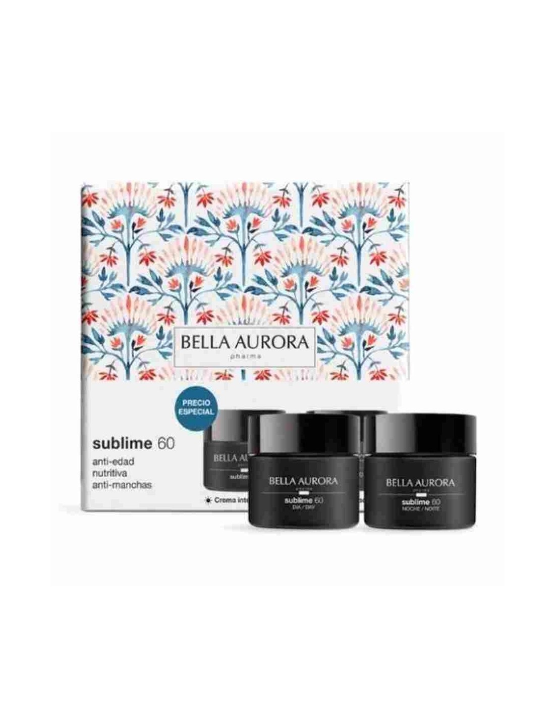 PACK SUBLIME DIA Y NOCHE +60 AÑOS Este pack exclusivo destinado a pieles maduras te ofrece el tratamiento perfecto para el día y la noche: Sublime 60 día crema multi-acción anti-edad Protege y fortalece la función barrera cutánea. Reduce arrugas y líneas de expresión. Ilumina y unifica el tono del rostro. PRESENTACIÓN: envase de 50ml Sublime 60 noche crema reafirmante anti-edad Refuerza y repara la función barrera cutánea gracias a su triple acción Anti-edad + Reparadora + Reafirmante PRESENTACIÓN: envase de 50ml