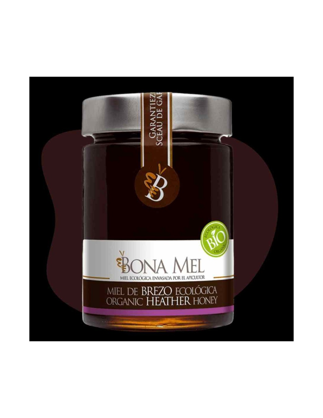 VARIEDAD Miel de Brezo Ecológica FORMATOS 900gr, 450gr y 300gr ORIGEN Comunidad Valenciana y Castilla y León (ESPAÑA) CARACTERISTICAS SENSORIALES Aspecto Visual (Color): Ámbar con tonalidades rojizas oscuras y consistencia viscosa. Aroma: Intenso y persistente a hojas en otoño, humus y setas. Gusto (Sensaciones en Boca): Dulce con un claro componente amargo y notas saladas. Tasto (Cristalización): Tendencia a cristalización variable. INFORMACION DEL PRODUCTO Miel de Brezo Ecológica elaborada por nuestras abejas procedente del brezo de la familia Ericaceae, situado en el mediterráneo, en los Parques Naturales ?Sierra Mariola? y ?La Safor?. También procede del Parque Natural de la Cebollera en las húmedas montañas del norte. Los parques naturales de la Sierra Mariola y La Safor están situados en la provincia de Alicante (España) en una altitud de 1.000 metros aproximados y el Parque Natural la Cebollera está situada en la provincia de Soria a una altitud de 1.500 metros a 2.000 metros de altura. TEMPORADA DE RECOLECCIÓN ENE FEB MAR ABR MAY JUN JUL AGO SEP OCT NOV DIC