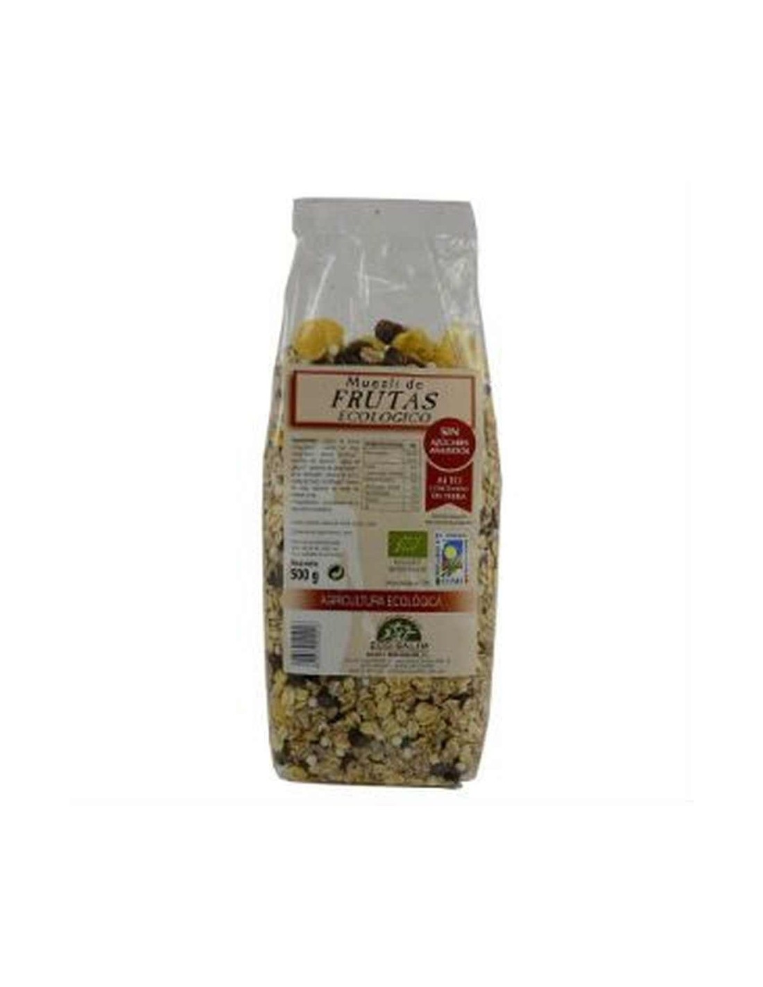 Muesli Ecologico, con los ingredientes procedentes de cultivos de agricultura ecológica.