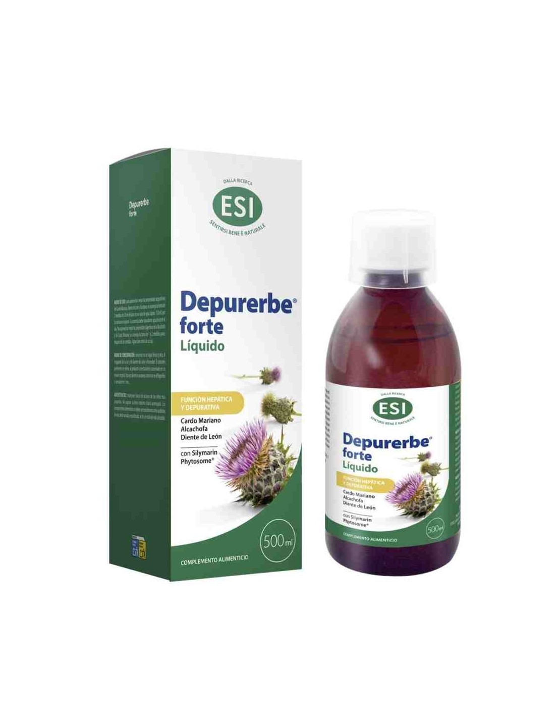 Complemento alimenticio a base de Silymarin Phytosome(extracto estandarizado de Cardo Mariano con fosfolipidos) y extractos vegetales de Alcachofa, Diente de León, Bardana, con Colina, Inositol y Vitamina B6 y E. El Cardo Mariano, la Alcachofa y el diente de León son útiles para favorecer la función hepática y las funciones depurativas del organismo, El cardo y la Alcachofa además favorecen la función digestiva y tienen una acción antioxidante.El Cardo ayuda al metabolismo de los carbohidratos y la Alcachofa al metabolismo de los lípidos.La Bardana favorece el drenaje de los líquidos corporales y las funciones depurativas, contribuyendo también al bienestar de la piel.El Diente de león facilita la regularidad del tránsito intestinal y el drenaje de los líquidos corporales.La Colina contribuye al mantenimiento normal de las funciones hepáticas y al metabolismo normal de los lípidos. La vitamina B6 contribuye a la regulación de la actividad hormonal y al metabolismo normal dela homocisteína.